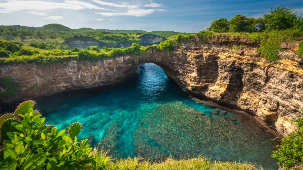 Angel’s Billabong adalah pantai populer lainnya di Nusa Penida dengan kolam renang tanpa batas alami yang dikelilingi oleh tebing karang dan menjorok ke lautan yang menghadap ke Pantai Manta Point. Lokasinya berdekatan dengan Pasih Uug (Broken Beach). Laguna batu yang terbentuk secara alami ini menawarkan pemandangan laut yang indah. Dengan warna zamrud dan airnya yang jernih, Angel’s Billabong adalah lambang yang menakjubkan. Anda dapat turun ke kolam batu sejernih kristal untuk berenang atau berendam, tetapi hanya saat air surut.